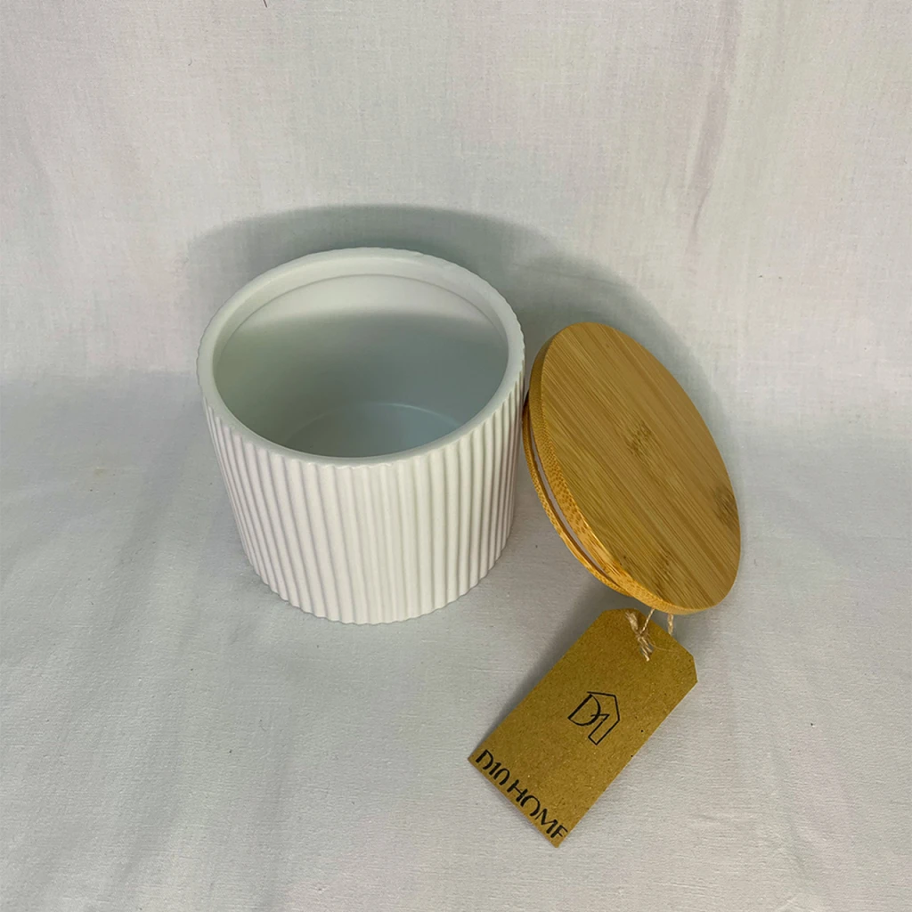 Pote de cerámica de bambú blanco mediano