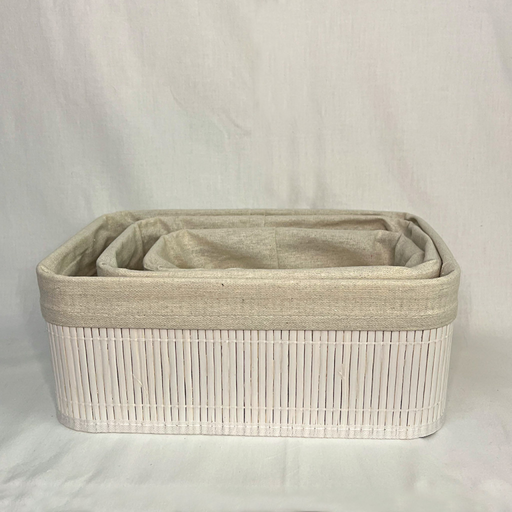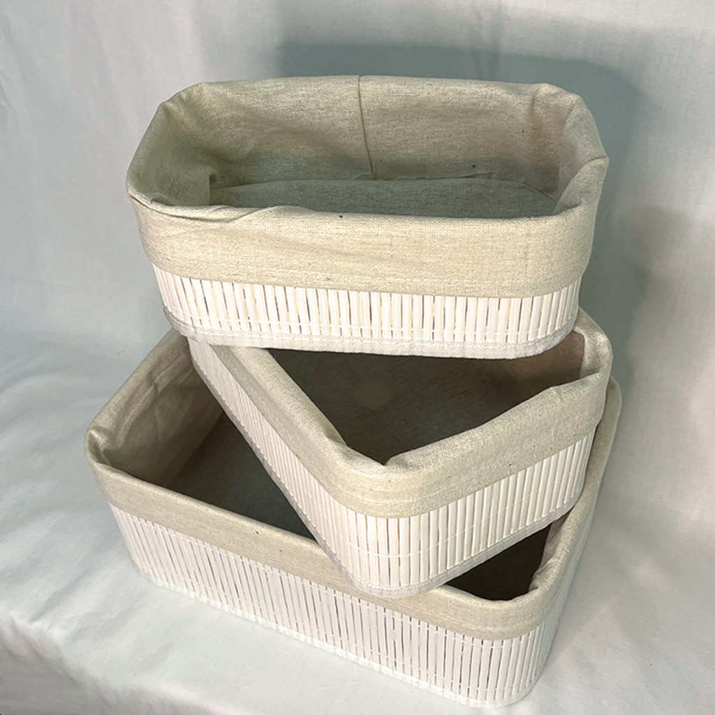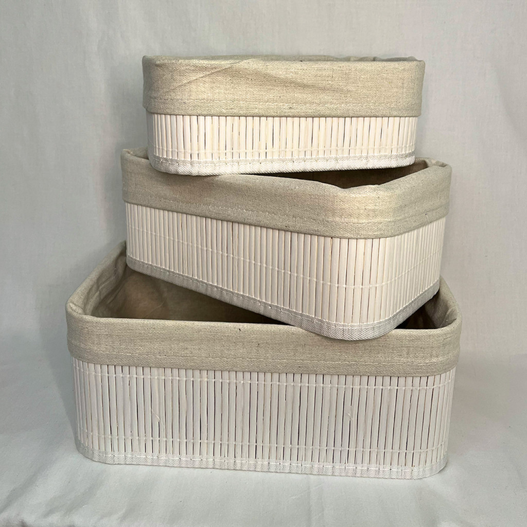 Set organizador blanco de bambú y tela x 3.