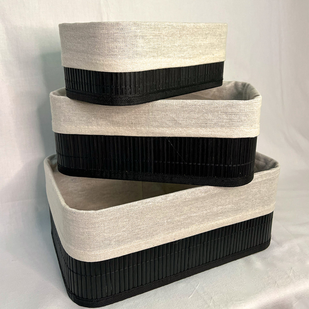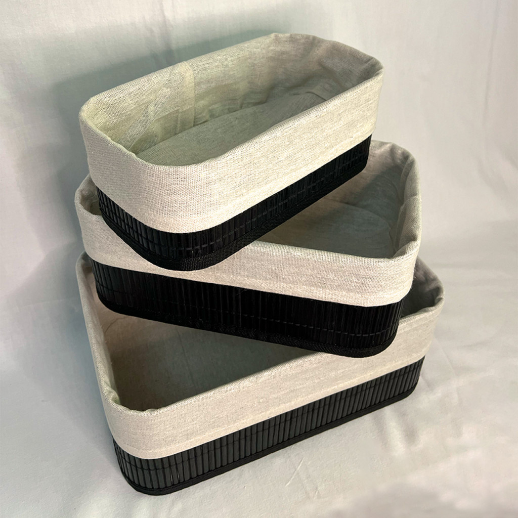 Set organizador negro de bambú y tela x 3.